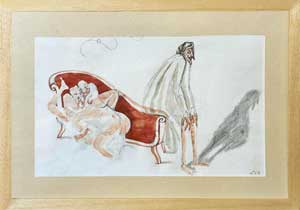 L'homme endormi sur sa femme en colère
